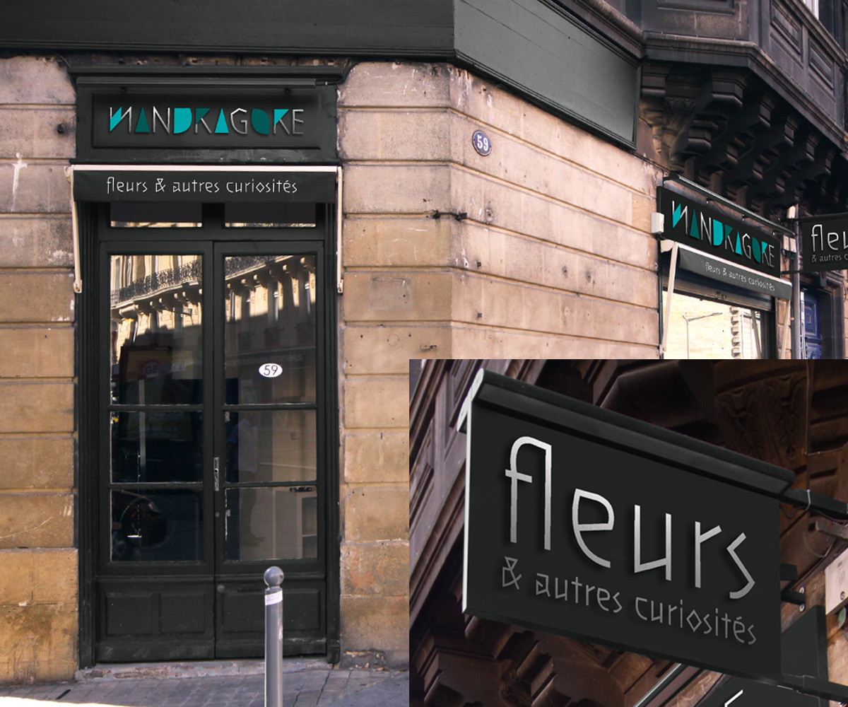 MANDRAGORE BORDEAUX / MAI 2014 // Boutique de fleurs & autres curiosités Réalisation de l’image de marque pour Mandragore Création Identitaire /// Devanture boutique /// Supports de communication